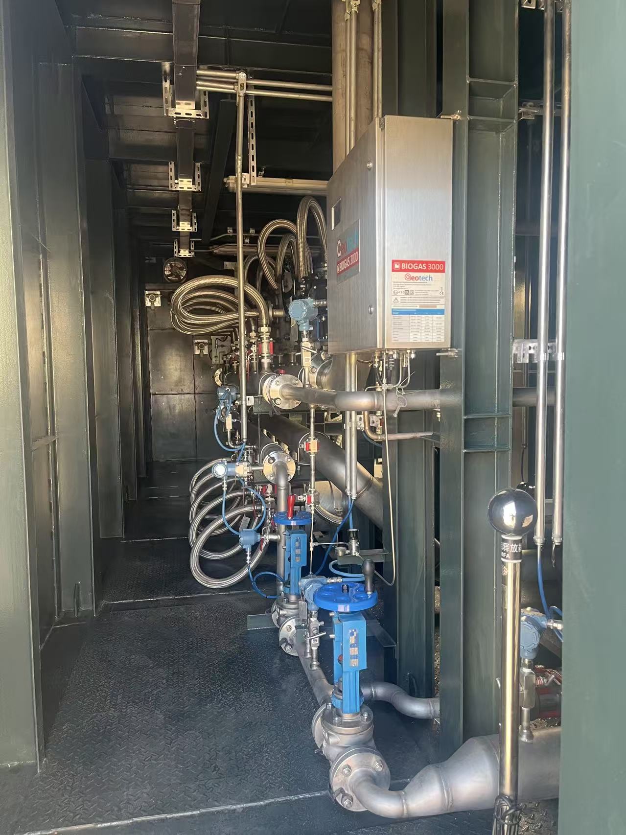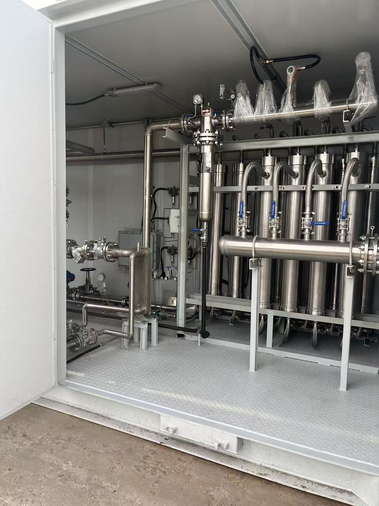 膜分离法沼气提纯设备包括:螺杆增压机、冷干机、气液分离罐、除杂罐、过滤器、中空纤维膜、组分分析仪、配置阀门、管道仪表等。